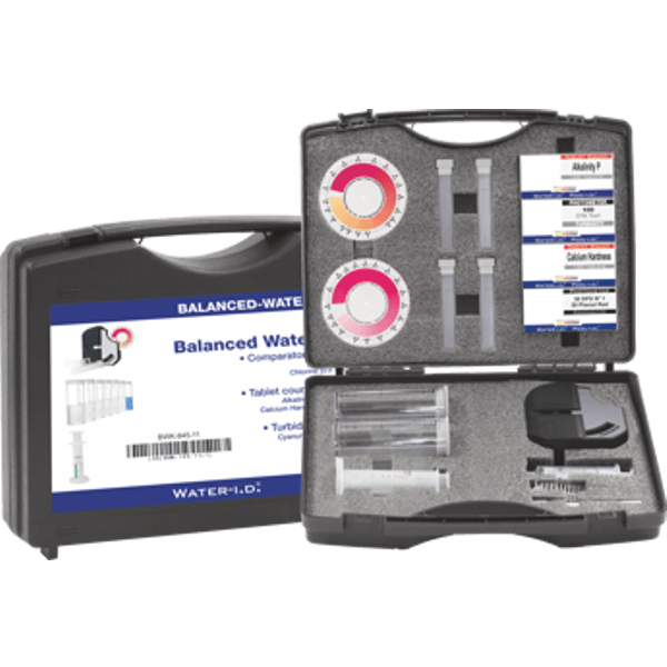 Balanced Water Kits by Water-i.d.® are a perfect matching combination of the Comparator method and Mini-Kits, such as the tablet count method and the turbidity method, covering the most important water parameters in one kit. Depending on the equipment, the set allows the measurement of chlorine and pH using the comparator method, alkalinity, calcium hardness, and cyanuric acid using the tablet count with the Nessler (turbidity method). The summary of these parameters in a set is the handiness and the needs of specific users, such as the boiler industry, owed.