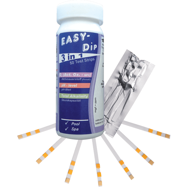 3-in-1 test strips for the measurement of pH, Active Oxygen (O2 / MPS)- and Alkalinity values. Each 10 of the 50 strips per can are vacuum packed in foil. Number of test strips: 50 Shelf-Life in years: 3